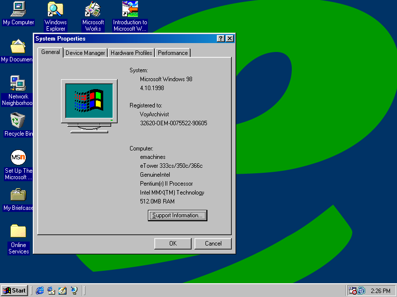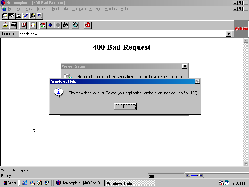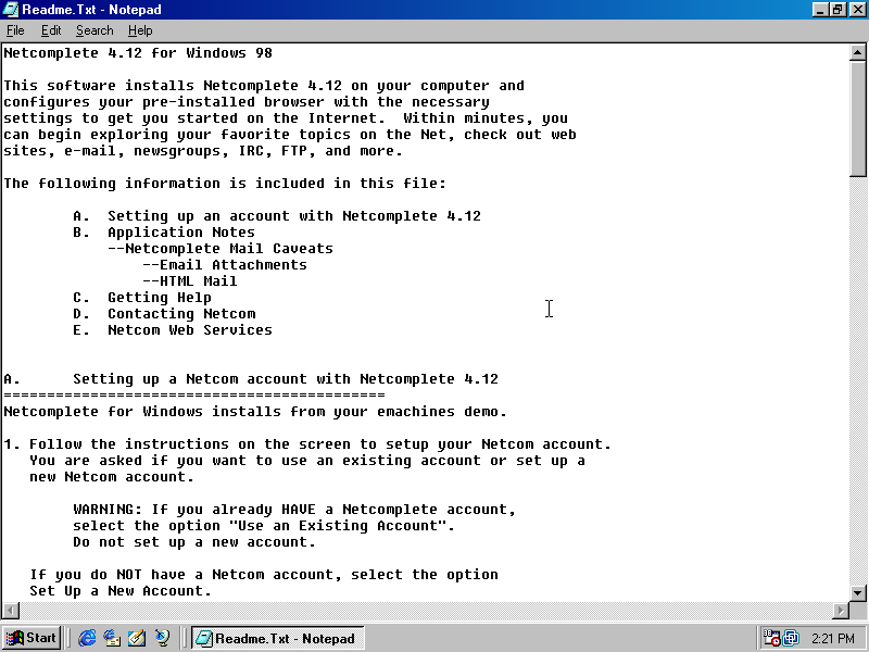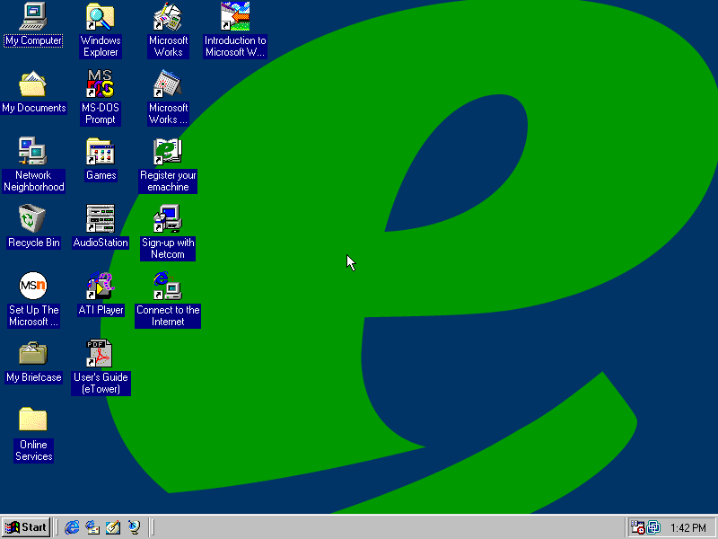 Author: Anonymous Welcome to another OEM review! This is the desktop for the eMachines eTower series of computers. It has Windows 98 FE pre-installed. Specifically, the models are the 366c, 333cs and the 350c. Similar to other reviewed models in terms of the model name but we're gonna check it out anyways. Well I'd say this is a nice start. the ATI Video Player version 5.2. Looks like its existed since 1 year after 95's release and kind of went on from there. Most likely discontinued by the XP-era though. Okay so this is new...this is apparently some networking software??? Its named Netcomplete and I've never seen this software in any other PC install in my life, not eMachines or any other OEM. If I find any other info on this or if you guys do I'll edit this message to add said info. Well safe to say its definitely a service. Doesn't seem like an ISP though but it could be for all I know. This interface in general reminds me of like enterprise software where you'd have a login dialog to type in your credentials then you'd have access to sensitive information. You know, without context or otherwise...this is kinda hilarious. Oh yeah you want to connect to Netcom? Just hit Connection Established and you're in. That's actually hilarious. Looks like it uses dial-up by default though. Well this gives us more insight into the application. It looks like its got everything and by default email is selected as the default "startup application" but you also got FTP and IRC (oh boy, IRC). Who remembers IRC? Even a MOTD which is...intriguing. Well hitting offline allows us to actually peruse the application to see what works and what info we can find. It looks like this is version 4.12 build 110 and has existed since at least Windows 95's release. Hitting that little button up there by the file that looks like it makes a new document actually opens up this and a little thing that looks like a web browser inside of it with a custom IE-like GIF and some additional buttons and a URL bar. I guess we wont be using this then. This kind of leads me to believe its a paid service due to the forced login. Possible usage of email addresses from today's world??? Well I finally found one thing you can use on here without logging in. I just need a working email to test it on lmao. The logon servers still exist??? That is...very intriguing considering netcom.com doesn't even exist today lmfao I'M CONNECTED SOMEHOW. Also like 5 seconds later I got a Winsock error. Somehow I'm fucking connected and Cloudflare blocked my request lmao. This was my Winsock error. Hell if I understand it. This has to be one of the most interesting pieces of software I've ever stumbled upon When you click help and it tells you that the help doesn't exist™️ kek I apologize for you not knowing what HTML is in 1998. The fuck is wrong with this application. Trying one of our partners sites doesn't even work and it was fucking made for these things. Amazing. This animation moves slower than any other one I've seen. Also the domain does look to exist but only on www (good job IT team, not fucking auto-redirecting). Just found this neat windows feature. I actually like this. Netscape never had this lmao but then again its browser was actually fucking OPERABLE. Not to mention known...this shit is so unknown I'm still trying to wrap my head around it. This feature reminds me of the rebuilt and updated Windows 3.X file manager for Windows 10 and shit. Well let's see if this works F Well the news is actually random bullshit. I have no fucking clue what this is but double clicking causes the application to "dispatch tasks". This explains a lot. Its basically an ISP without them saying that they're an ISP. Moving on from that huge mess of an application. We have WinDAT from Voyetra. Its a music playing application basically. Came with ATI oddly enough. We have Microsoft Works version 4.5a for Windows 95 here. Typical of eMachines actually. And the final highlight is Adobe Acrobat Reader version 3.01 (3.0). Again, this software is meant for reading the pre-installed PDF version of the manual. Well that's all for this VERY unexpectedly long and somewhat exciting OEM review and I'll see you in the next one |