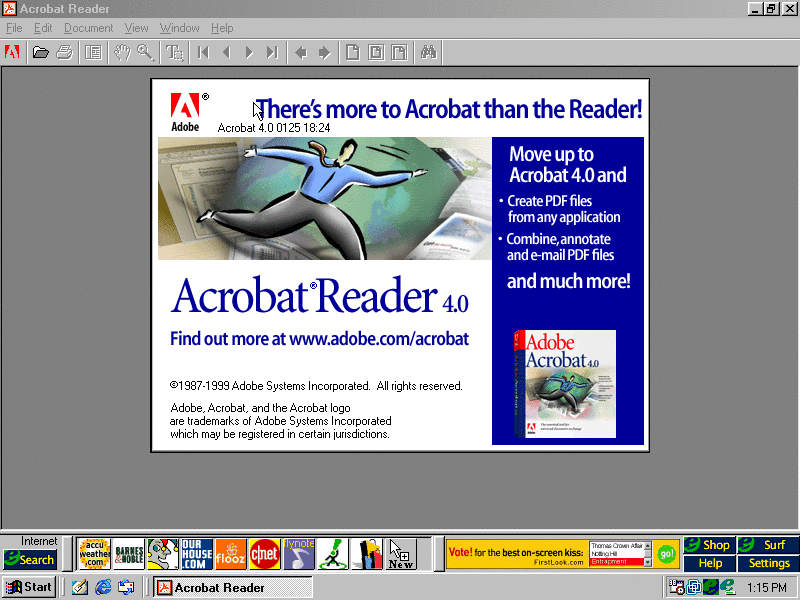This model comes with the free Adobe Acrobat Reader 4.0. Adobe Acrobat Reader being included is kind of an OEM-wide thing...most OEMs include it one way or another. (PNG)