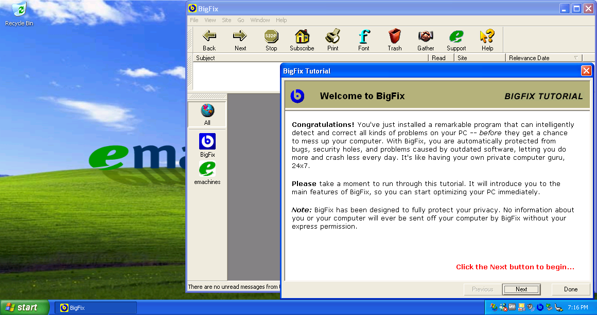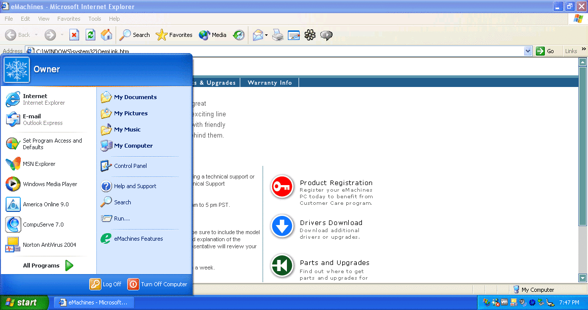 Author: Anonymous This is the desktop for the eMachines M2350. This is one of eMachines's laptops in the XP-era. It sports 256MB of RAM with another 256MB expansion on that RAM (up to 768MB of RAM), an AMD Athlon 2800+, an ATI Radeon IGP 320 and a 15.4" TFT display. Let's dig in. No new wallpapers, the usual and no OEM screensavers which is typical for every OEM. So you got this neat little HTML file that you can find by going to your start menu and looking on the side. There's an OEM button named "eMachines Features". Ah...always nice to see Netscape. Don't think I've ever seen this version in particular before but still nice. Sadly it doesn't work due to required activation for some reason. You can probably imitate it somehow if you hack the executable (or just hack it to be activated). Apparently it does work? Well...then this is Netscape 6.2. Specifically this is Netscape 6.2.1. Never used or tried out a Netscape version this modern before (or new in other words) but still nice I say. I did try launching it twice and first one just instantly quit on me and the second one showed a dialog and then launched the actual browser. Seems like a very customized version of AIM...a lot more than I've seen in the past. Pretty nice if you ask me. Okay so moving on you got this application that comes with every eMachines PC in the XP-era called BigFix. This is what you get on first-run. Its pretty nice but its really just for notifications, similar to the Compaq BackWeb stuff from the 90's. eMachines discontinued its use of it so you really just get only 1 notification. This is the notification in question So this PC comes with Cyberlink PowerDVD which some other PCs also have. I can't show or tell you the version since when I go to click on the eMachines logo on the player (to get the about dialog) it crashes for some odd reason. This is custom branded though and kinda nice to be honest. Now what would the XP-era be without AIM...good ol' classic AIM. Oddly enough this is the 2nd AIM to be installed. There's also the Netscape version installed. Don't know what the fuck they were thinking when they did this. You also have ICQ which is another instant messaging application. Never used it and I don't know if it stands for anything but I do know that by this point AOL would've owned it and converted it over to AIM's protocol. Kinda nice. This seems to be version 2001b. For the first time ever QUICKTIME has been pre-installed. This is nice isn't it? The shitty watching software pre-installed and was made by Apple. At least iTunes wasn't pre-installed lol Nice...more media players. This one is RealPlayer 8 Basic. And finally in the media player section...we have Winamp version 2.75 (with some shit that looks like its coming out of the damn Nintendo 64). First time I've ever seen it bundled with a PC before...interesting. Oh and yes, that is "Netscape Winamp" you see there on the player, it was a skin I found while trying to navigate to the about box. Its very interesting to say the least. You have Adobe Acrobat Reader version 5.0.5.9/24/2001 for reading the 2 manuals you get pre-installed as PDFs. Kind of like eMachines back in the 90's eh? This wasn't on every XP-era eMachines PC though keep in mind. You got a copy of Works 7.0. Not bad...not bad. Let's move on to our final couple of things. I was gonna show you Norton AntiVirus 2004 but...it gave me multiple random errors and now its not doing shit. So...let's move on. Finally, you got Microsoft Money 2004 Standard OEM Edition. There's also CompuServe 7.0 and AOL 9.0 Optimized but we wont be checking those out. Well that's all for this EXTREMELY long OEM review and I'll see you in the next one |